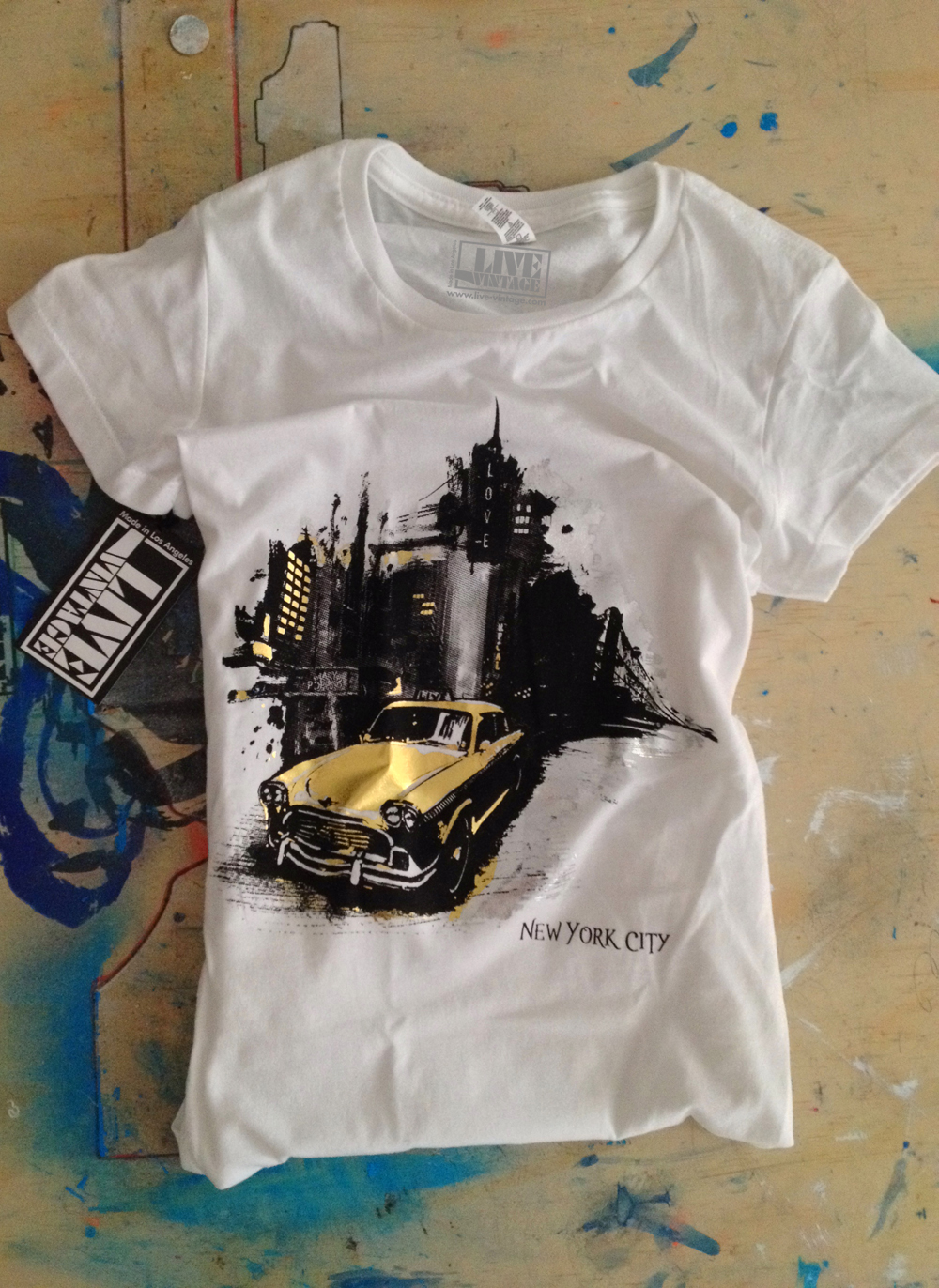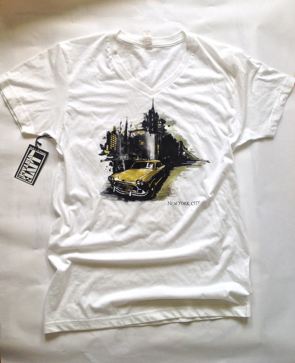 New York Taxi Foil and Ink Silk Screen Limited Edition T-shirt featuring Checker Taxi Cab, Tank, V-neck